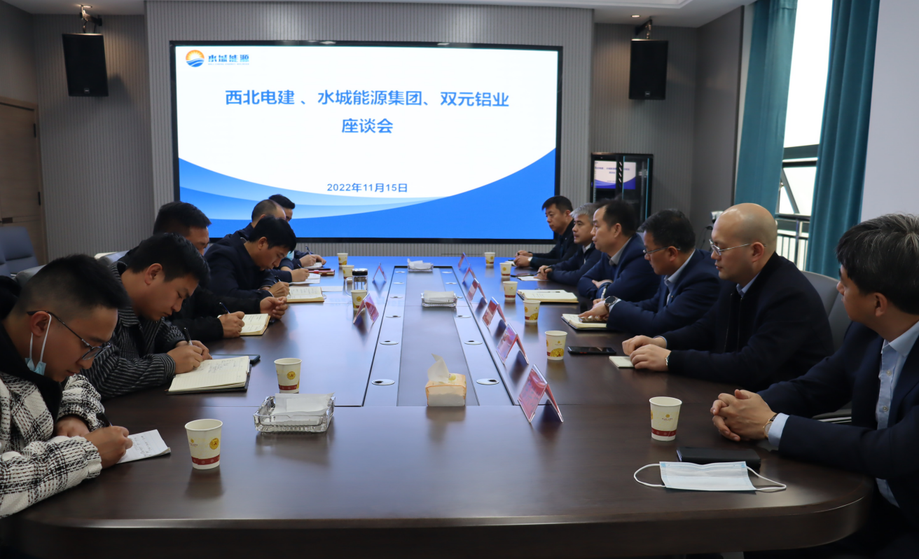 11月15日,中國能源建設(shè)集團西北電力建設(shè)工程有限公司、六盤水市水城區(qū)能投實業(yè)(集團)有限公司與貴州省六盤水雙元鋁業(yè)有限責任公司在水城能源集團17樓會議室開展座談交流會,就進一步合作發(fā)展等事宜進行深入交流。